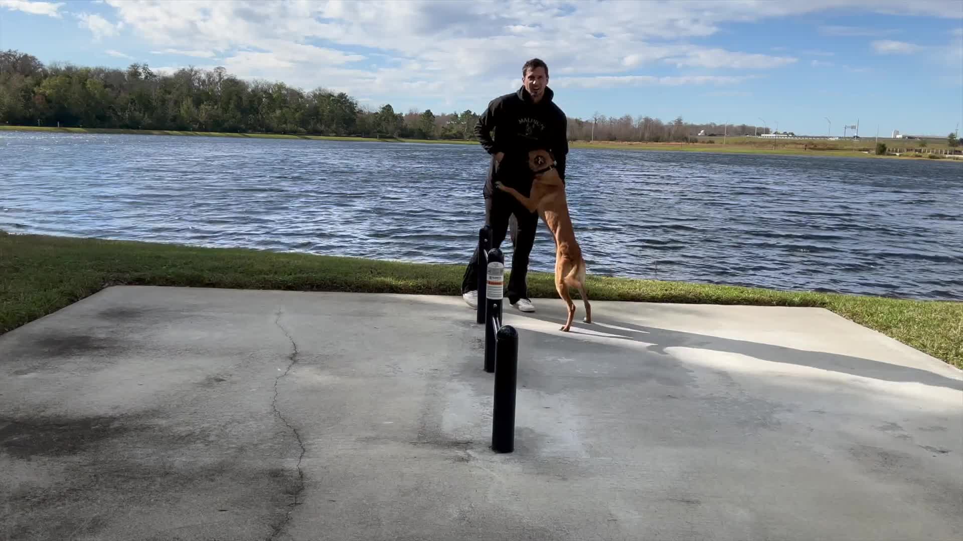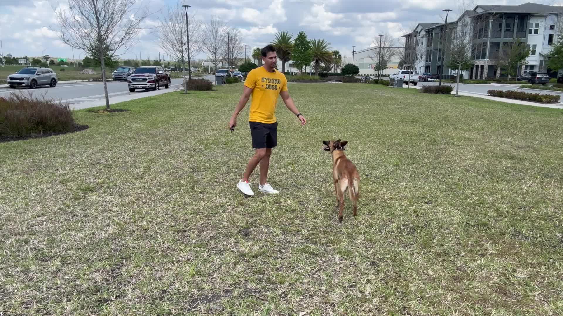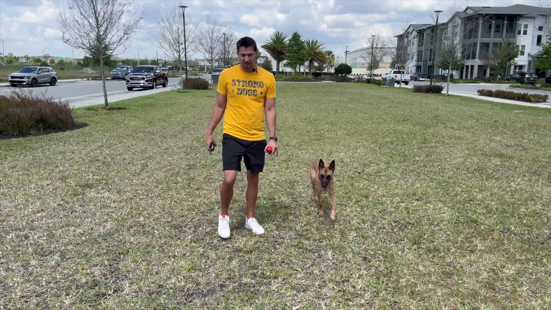 Down in motion teaches your dog to drop into a down while moving beside you. This is a powerful control exercise that improves obedience, impulse control, and responsiveness. We break the exercise down so your dog clearly understands the expectation.
